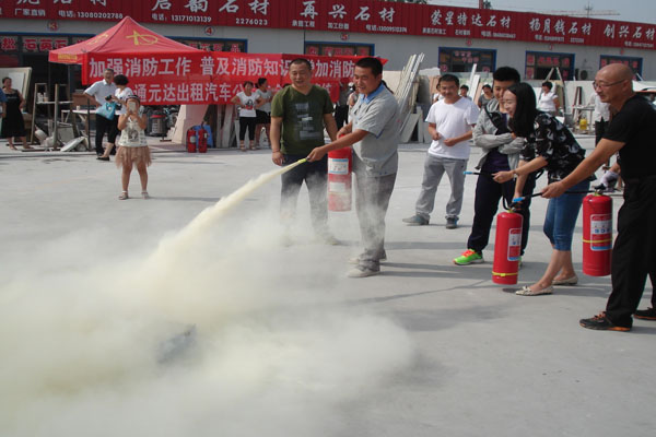 為了進(jìn)一步強(qiáng)化建材市場員工及商戶的消防安全意識,提高火災(zāi)防控能力,建材市場于2016年7月6日上午9時,在石材區(qū)小廣場,組織開展了一次滅火實戰(zhàn)演練。