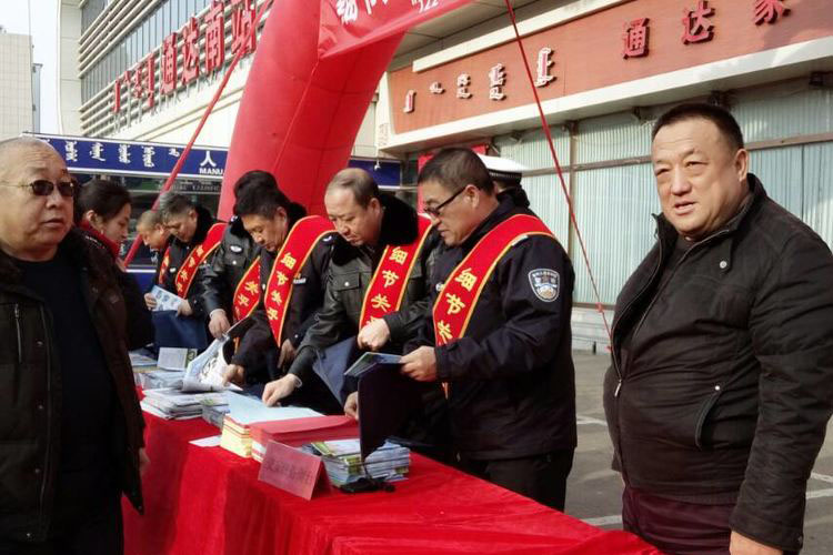 客運(yùn)南站楊經(jīng)理發(fā)放安全宣傳資料,讓大家提高安全意識(shí)。