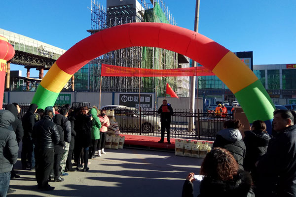 1月15日上午10點,通達建材市場新春慰問商戶活動儀式,在建材市場院內舉行。公司總裁辦公會成員,及市場相關負責人參加了此次活動儀式。來自市場內的全體商戶應邀參加了活動儀式。雖然氣溫已低至零下20度,但卻絲毫沒有阻礙前來參加活動的商戶熱情,活動在歡快祥和的氛圍中進行,讓商戶享受到通達這個大家庭的關愛與溫暖。
