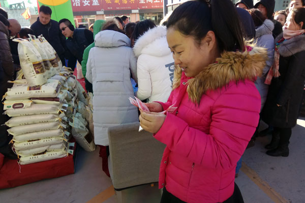 隨后建材市場總經理王江宣布慰問活動正式開始,商戶們井然有序地現場排隊領取慰問金及大米。