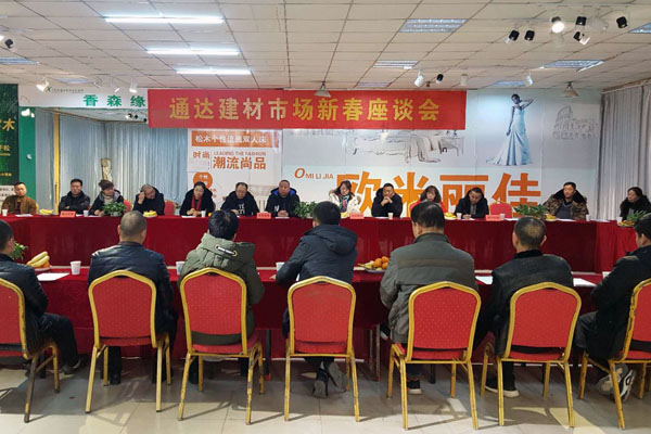上午10點半,通達建材市場新春座談會在市場南展廳順利召開,座談會上就商戶經營上面臨的困難與問題以及建材市場的發(fā)展方向的意見建議展開了深入的探討。公司總裁辦公會成員及市場相關部門負責人參加了此次座談會。建材市場總經理王江主持座談會并面對面聽取了大家的意見建議,建材市場商戶代表近50多人參加的座談會。
