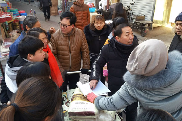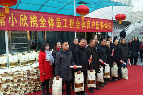 儀式結(jié)束后,所有商戶,工作人員盡然有序的離場(chǎng),由經(jīng)營(yíng)發(fā)展部門和環(huán)境服務(wù)部同事共同分成四個(gè)小組逐一將大米送到每家每戶
