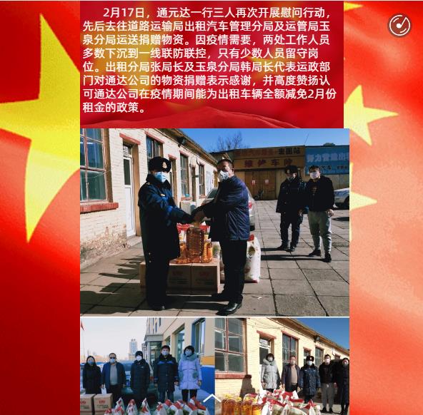 疫情形勢依然嚴(yán)峻,通達公司責(zé)無旁貸,進行愛心捐贈就是以實際行動來支持黨和政府的疫情防控工作,為打贏疫情防控阻擊戰(zhàn)貢獻一份力量!