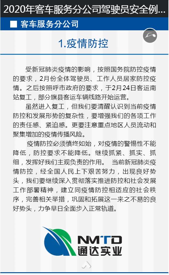 2020年客車服務(wù)分公司駕駛員安全例會(huì)及線上培訓(xùn)