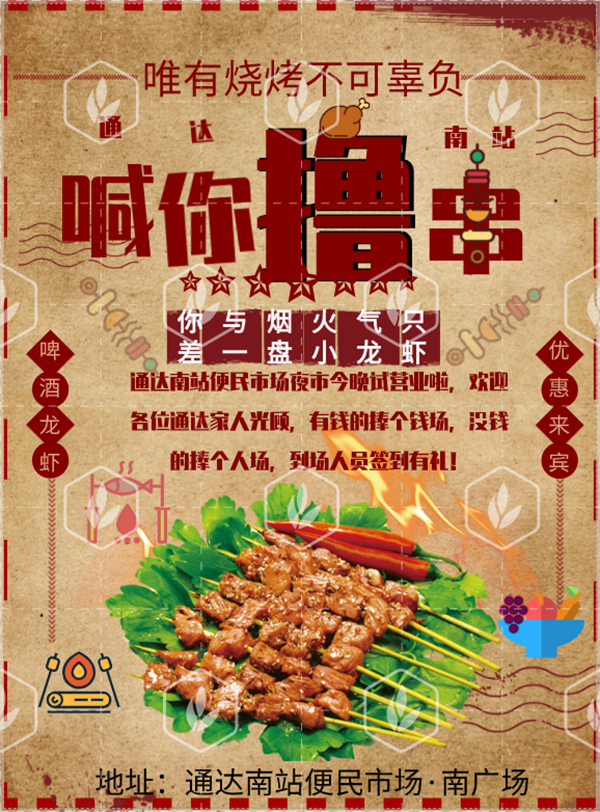 通達(dá)南站便民市場(chǎng)夜市——喊你擼串