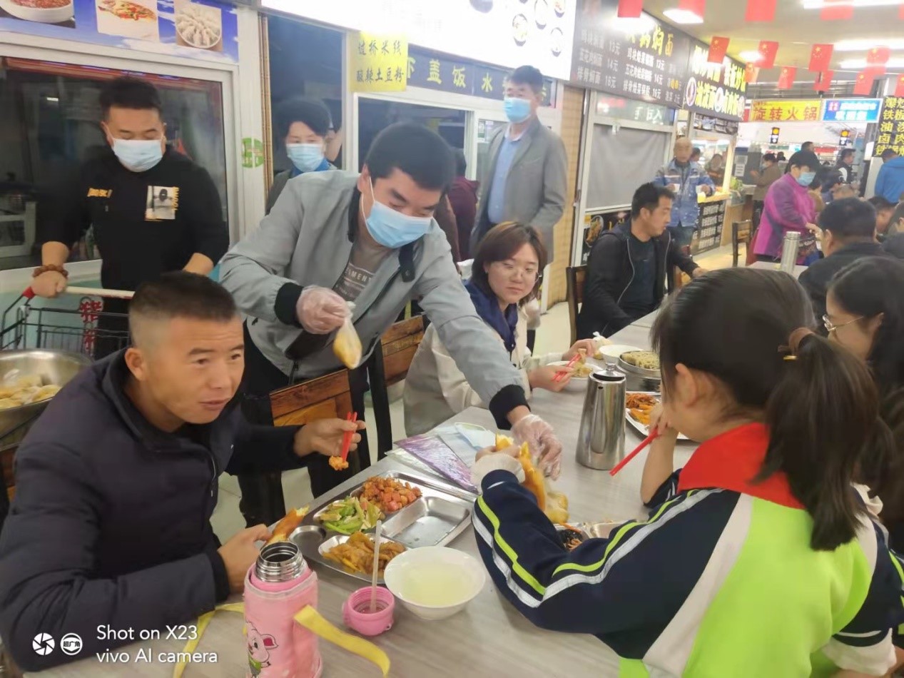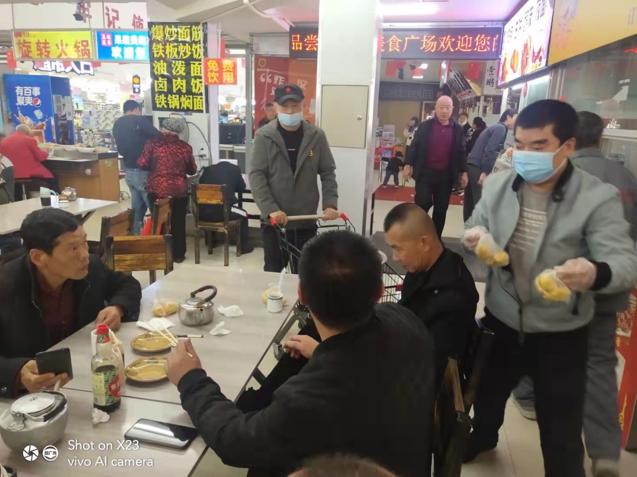 今天是九·九重陽節(jié),美食檔口客流增加,市場也為就餐的顧客免費贈送炸糕一份。